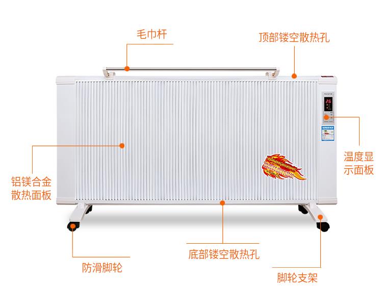 2、百旗碳纤维电暖器采用镁铝合金壳体,上下对流式设计,增加房间冷热空气交换,提高取暖效果,散热板H型设计,有效增加散热面积。