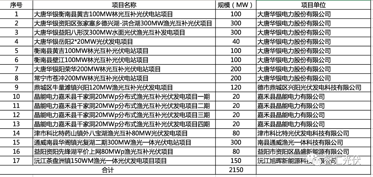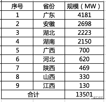 说明:上表中的数据,来源于各省的固定资产投资平台中,规模大于20MW的大型项目